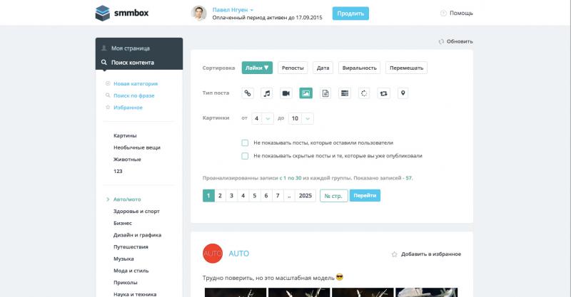 SmmBox — это веб-сервис для отложенного постинга и поиска контента для социальных лент. С помощью поиска можно отыскать наиболее вирусные посты в социальных сетях по нужной тематике и мгновенно опубликовать их в своих группах. Плюс возможно запланировать посты на несколько месяцев вперед. Сервис уже поддерживает ВКонтакте, Одноклассники, вскоре планируется подключение к FaceBook, Twitter и Instagram.