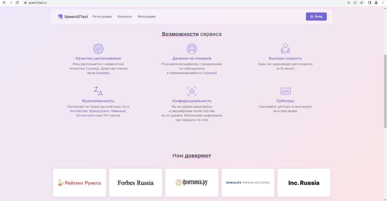 Классный сервис, который помог мне перевести интервью в текст. Качественно. Буду пользоваться.