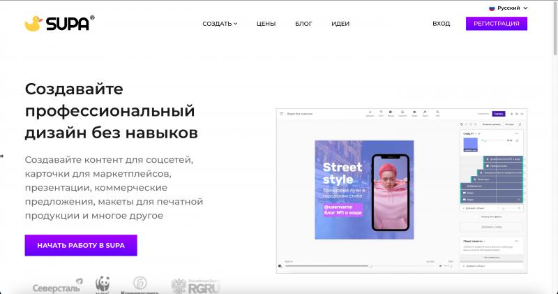 SUPA — это сервис для создания дизайна для не дизайнеров. С помощью этого конструктора можно сделать практический любой креатив для огромного спектра задач.