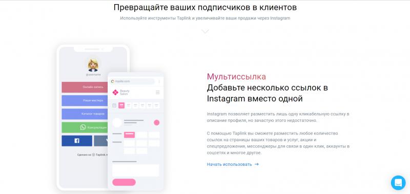 Taplink.ru - это инструмент, благодаря которому вы можете создать собственный мини-лендинг для Инстаграм без специальных знаний CMS, HTML-верстки, скриптов и др.