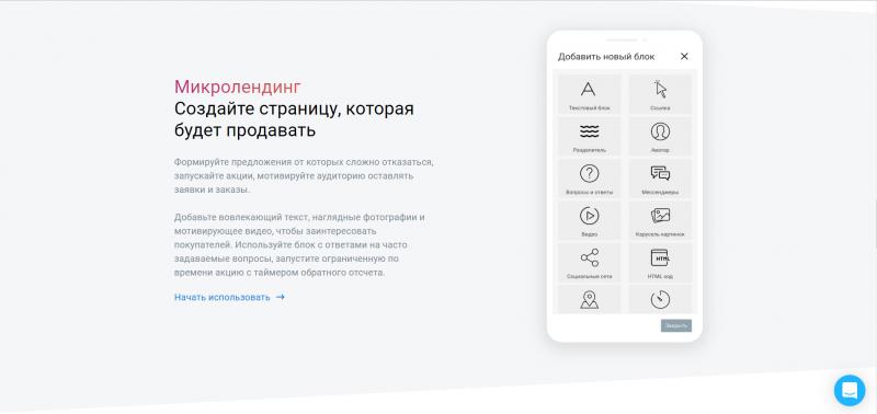 3. Позволяет создать свою страницу-визитку или лендинг;