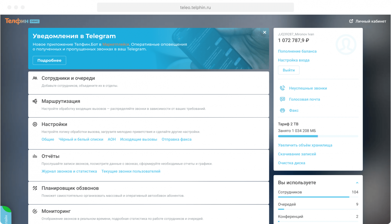 - Многоканальные номера, IVR, запись и хранение разговоров, статистика и отчеты по звонкам и 100+ других возможностей облачной телефонии для бизнеса.
