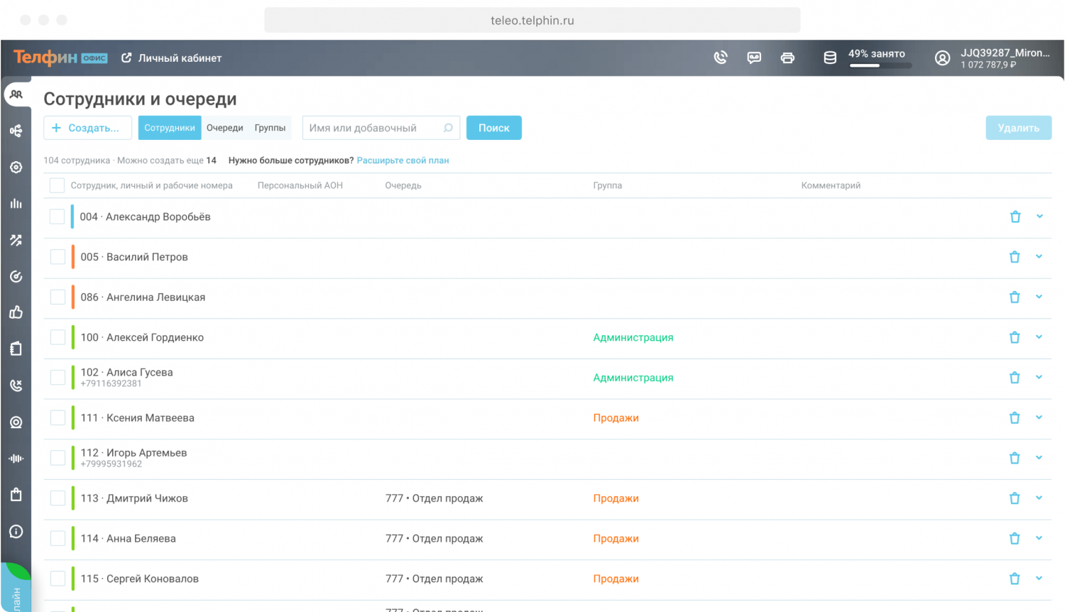 Телфин — это виртуальная телефония для малого и среднего бизнеса. Облачная АТС позволяет быстро создать корпоративную телефонную сеть с учётом специфики сферы работы компании.