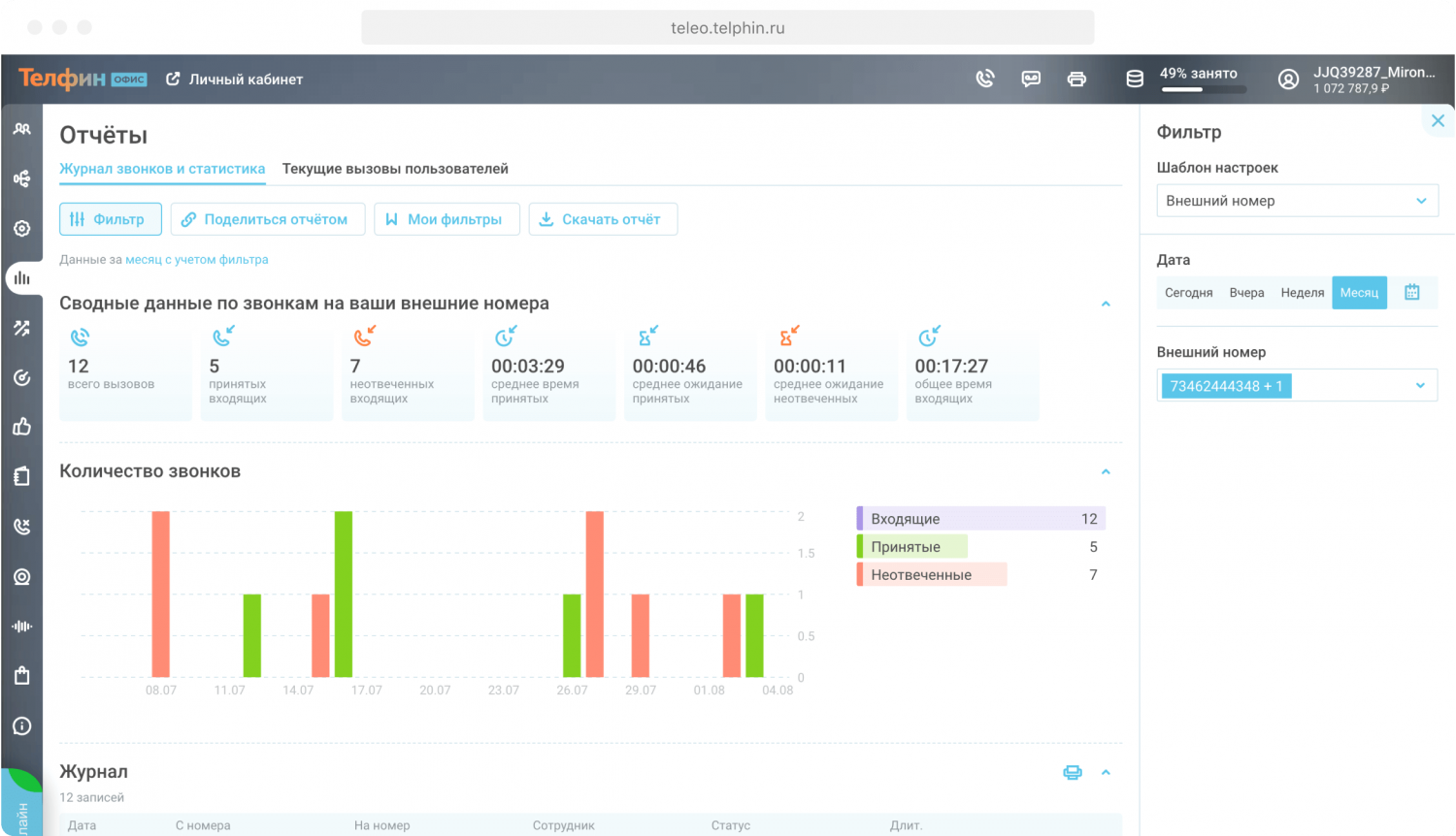 Для нас как для кол центра важна скорость обработки звонков, контроль за операторами и корректность предоставления информации. Поэтому у наставников в плане стоит большое кол-во по прослушке зф. Телфин стабильность и контроль нам обеспечили, есть даже возможность подключиться к разговору прямо во время звонка