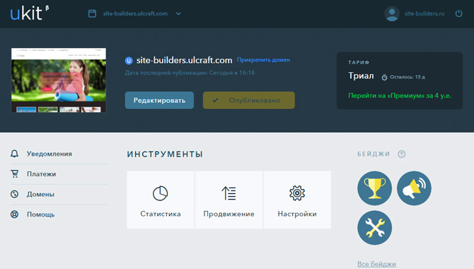 uKit отлично подходит для самостоятельного создания бизнес-визиток и лэндингов. Он имеет качественную техподдержку и большое количество подсказок внутри системы. Сайтбилдер позволяет достигать качественного результата минимальными усилиями.