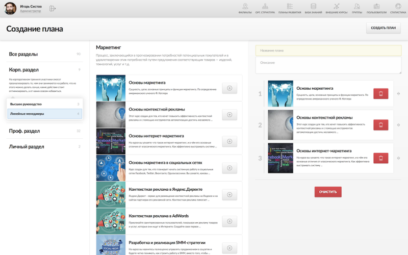 Понравилось, что есть готовые курсы от внешних провайдеров. Собрать свой курс тоже легко, используя встроенные инструменты сервиса.