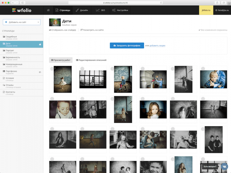 Стильный, быстрый, индивидуальный, адаптированный под все устройства и оптимизированный для поисковых систем — таким должен быть сайт фотографа. Продуманный интерфейс позволяет без технических знаний сделать сайт-портфолио и в дальнейшем удобно им управлять.