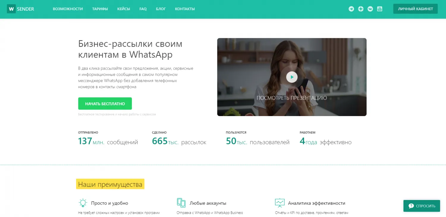 Возможности облачного сервиса WhatsApp-рассылок WSender: