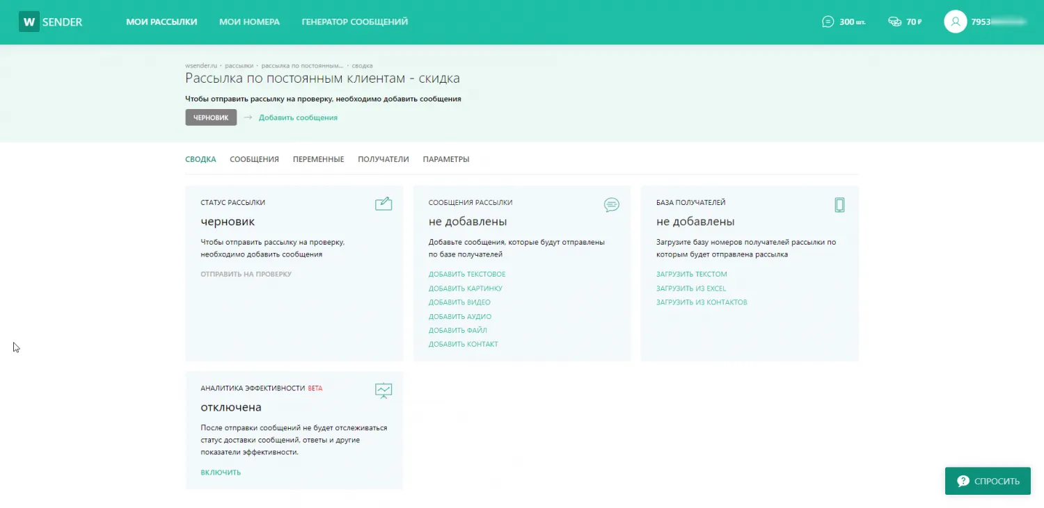 - Аналитика эффективности рассылки - После каждой рассылки вы можете получить следующие данные – наличие у получателей WhatsApp, сколько сообщений было отправлено, получено и прочитано, сколько получателей ответило на ваше сообщение.