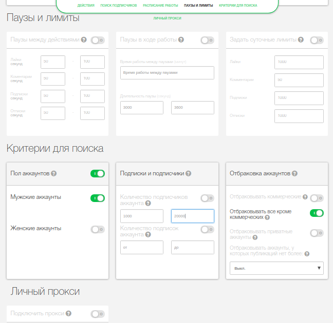 - Массфолловинг, масслайкинг, лайкинг комментариев, отписки, комментарии точные настройки.