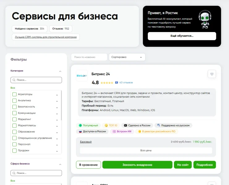 - Всегда выше конкурентов без PRO Карточка сервиса с тарифом PRO будет всегда выше тех, у кого PRO не оплачен. Если у 2-сервисов оплачен POR, то они будут выдаваться в случайном порядке вверху.